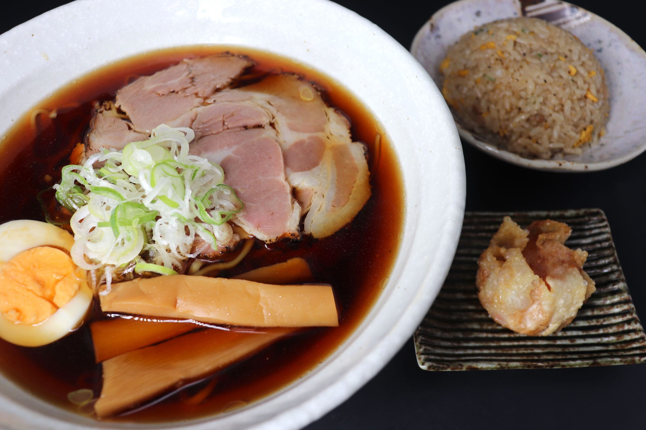 人気の中華そばセット。炒飯・揚げ焼売がついたボリューム満点な一品です。 ぜひ一度ご賞味下さい。