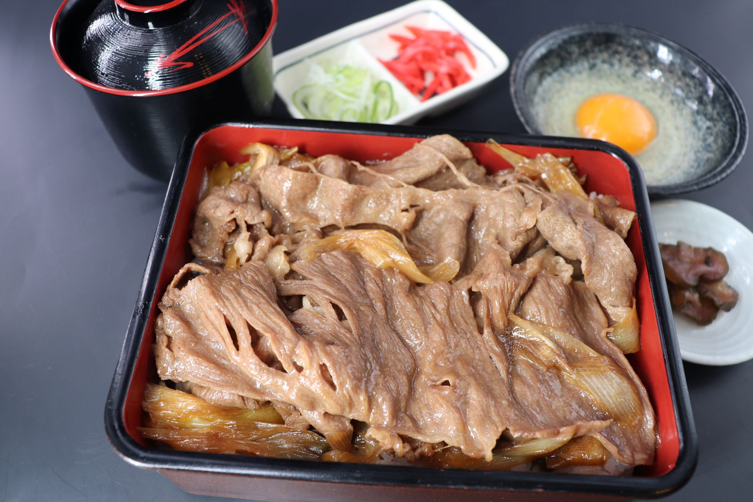 国産和牛A4ランクを使用したすき焼き重です。特製の割り下で味付けした和牛にお好みで生卵を溶いてお召し上がりください。