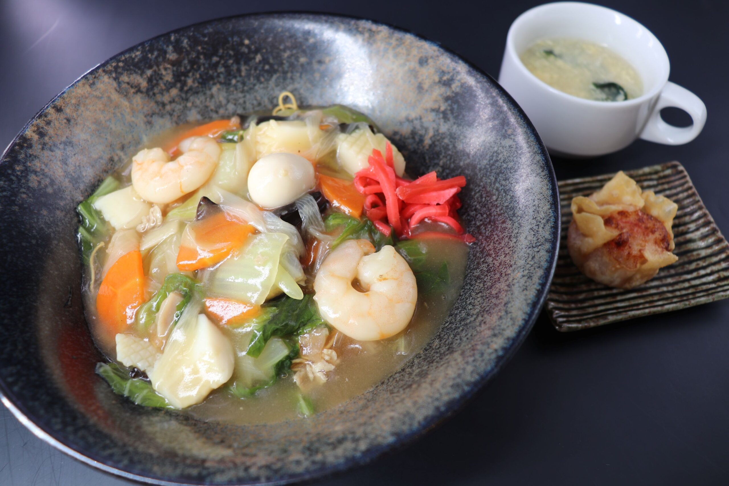 海鮮と野菜などを入れた中華あんかけをパリパリの皿うどんにかけた一品で、麺とあんかけの相性が抜群で女性にも人気です。ぜひ一度ご賞味ください。